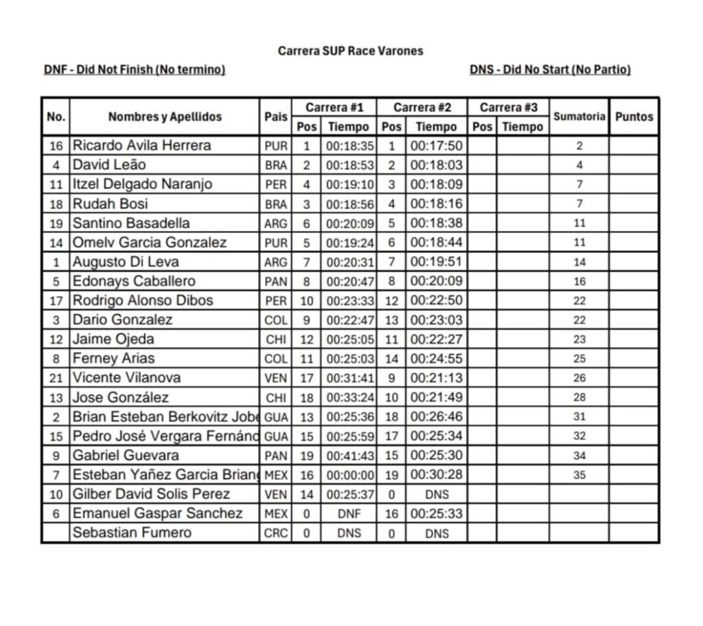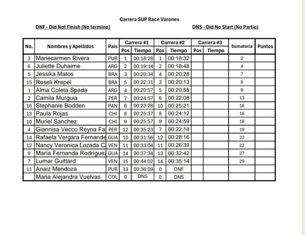 Una mención especial merece la venezolana Lumar Guittard, reconocida bodyboarder que se unió a última hora al equipo femenino para completar el cupo de su delegación. Sin experiencia previa en carreras de SUP, asumió el reto con valentía, para sumar importantes puntos a su país, mostrando una notable mejora respecto al primer día.